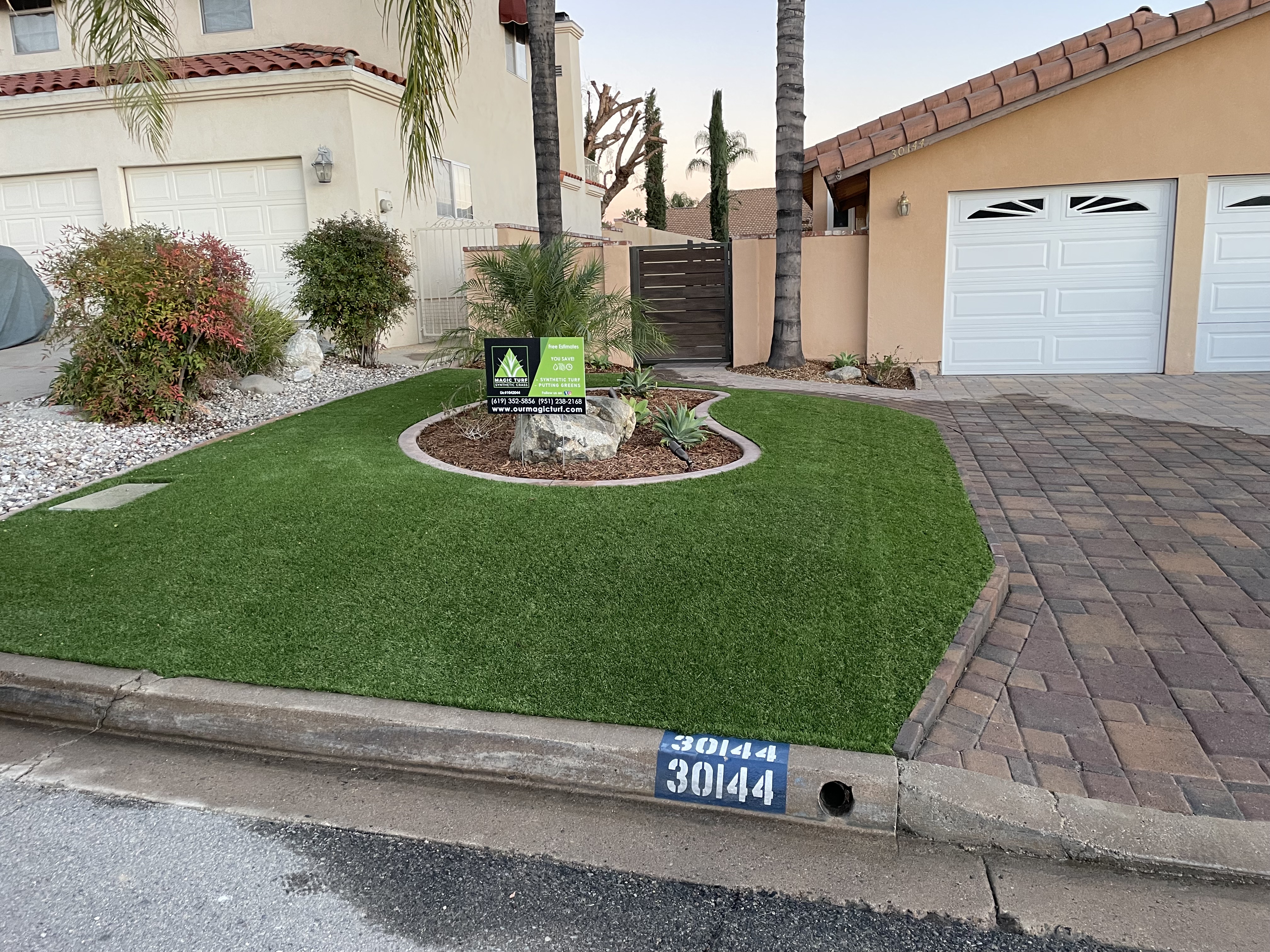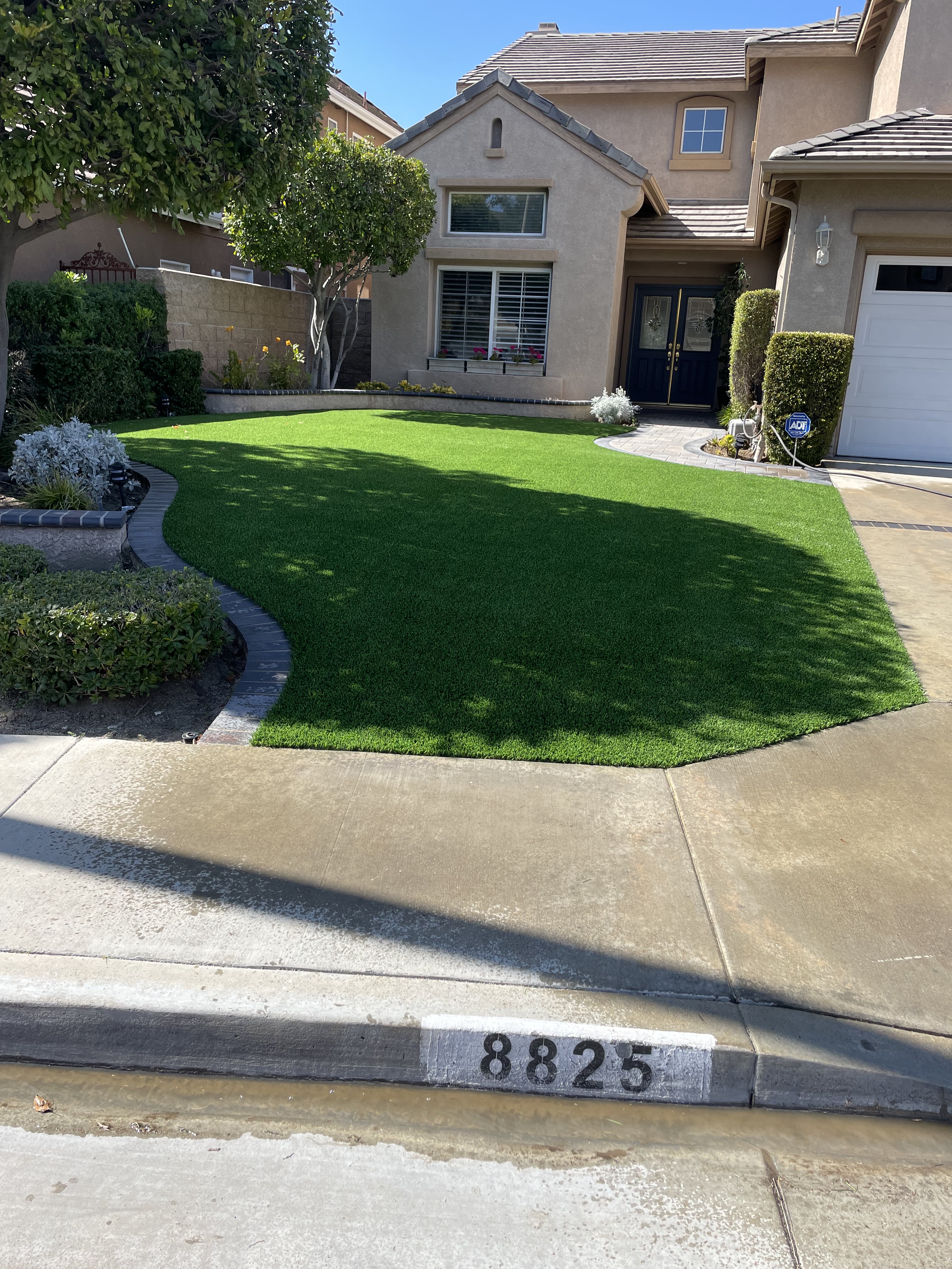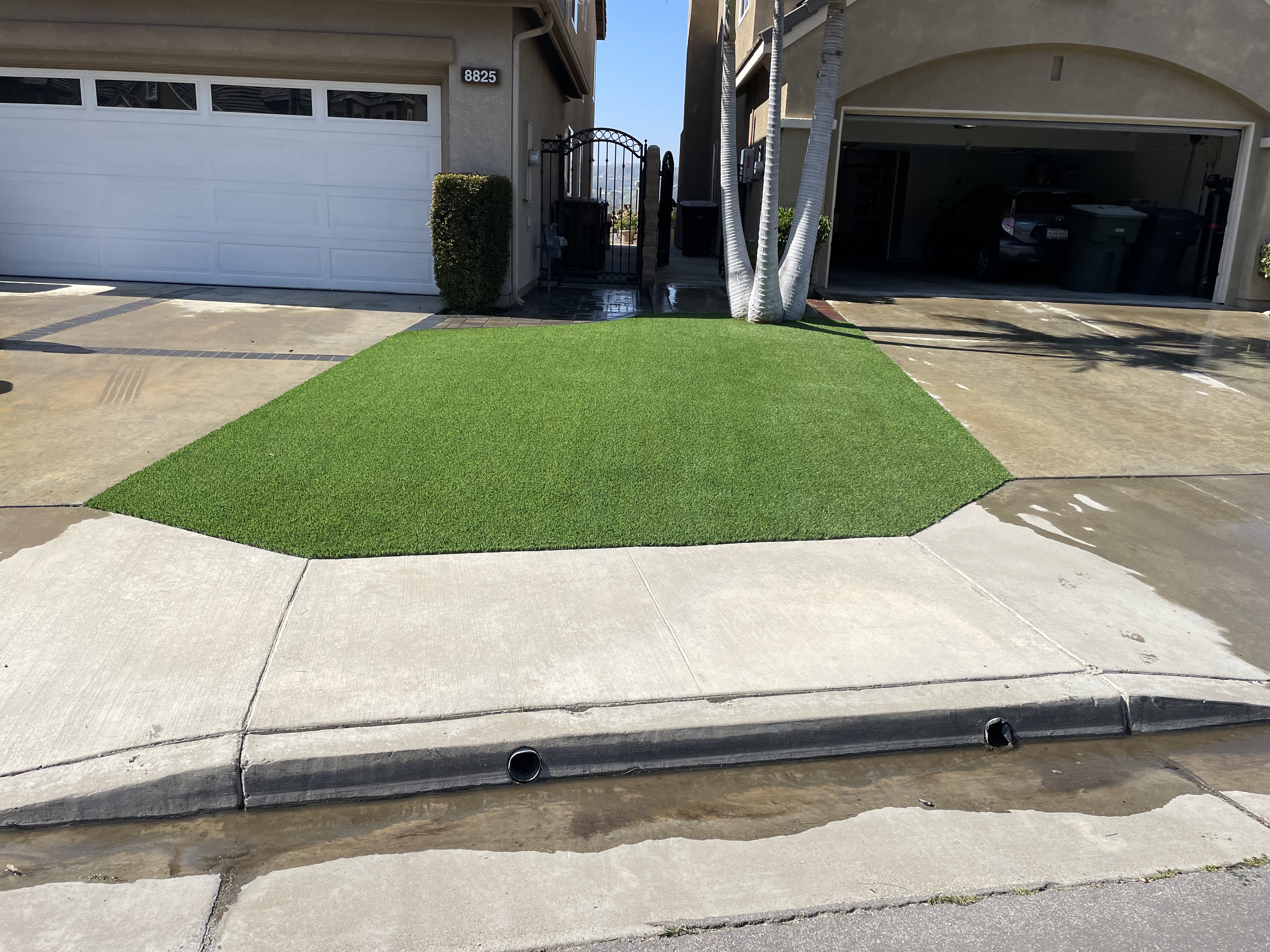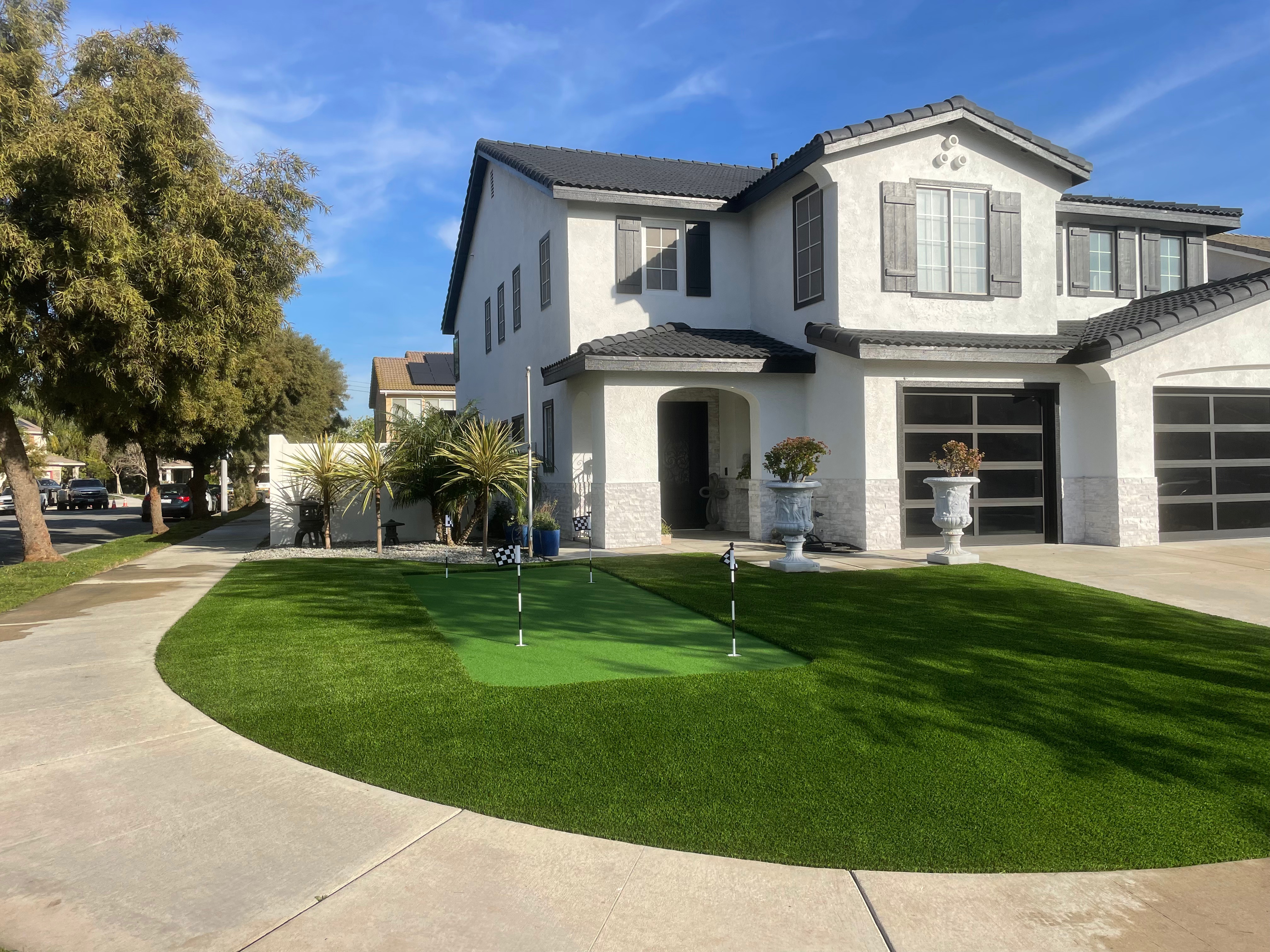Installing vibrant, year-round synthetic grass ensures your home maintains a polished and attractive appearance at all times.
